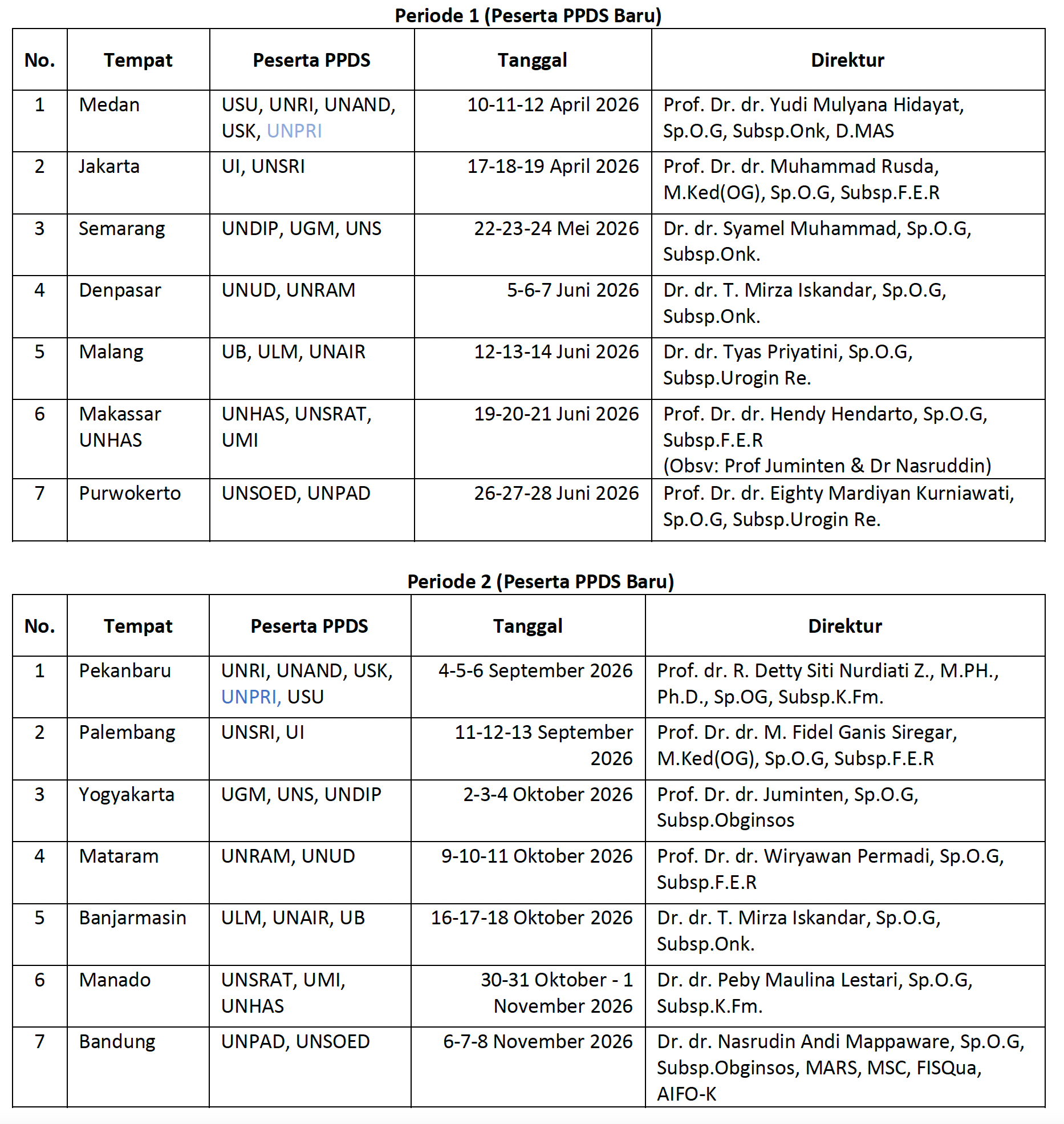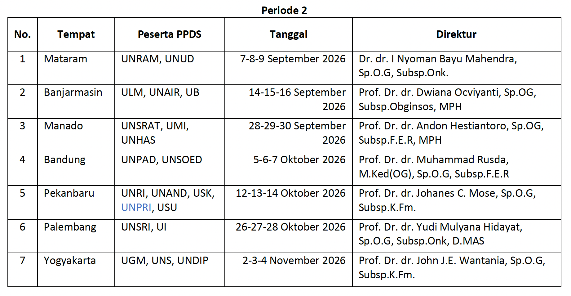Komisi Program Pendidikan Subspesialis / Subspecialist Education Program Commitee: Prof. Dr. dr. Sofie R. Krisnadi, Sp.O.G, Subsp.K.Fm.