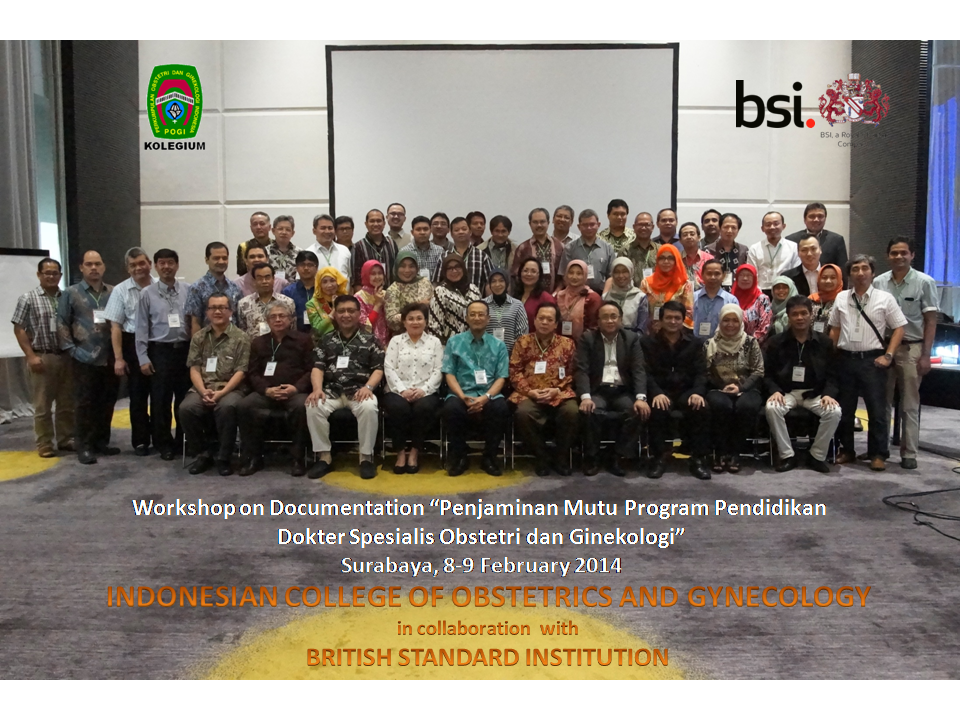 Pada tanggal 8 – 9 Februari 2014, Kolegium Obstetri dan Ginekologi Indonesia menyelenggarakan Workshop Documentation Penjaminan Mutu Pendidikan Dokter Spesialis Obstetri dan Ginekologi. Workshop bertujuan untuk memperoleh dokumen-dokumen yang diperlukan dalam rangka menjaga mutu pendidikan. Workshop ini melibatkan sedikitnya 50 orang Staf dari 15 Senter Pendidikan SpOG dari seluruh Indonesia, yang terdiri atas Kadep, KPS, maupun staf pengajar dan staf administrasi.